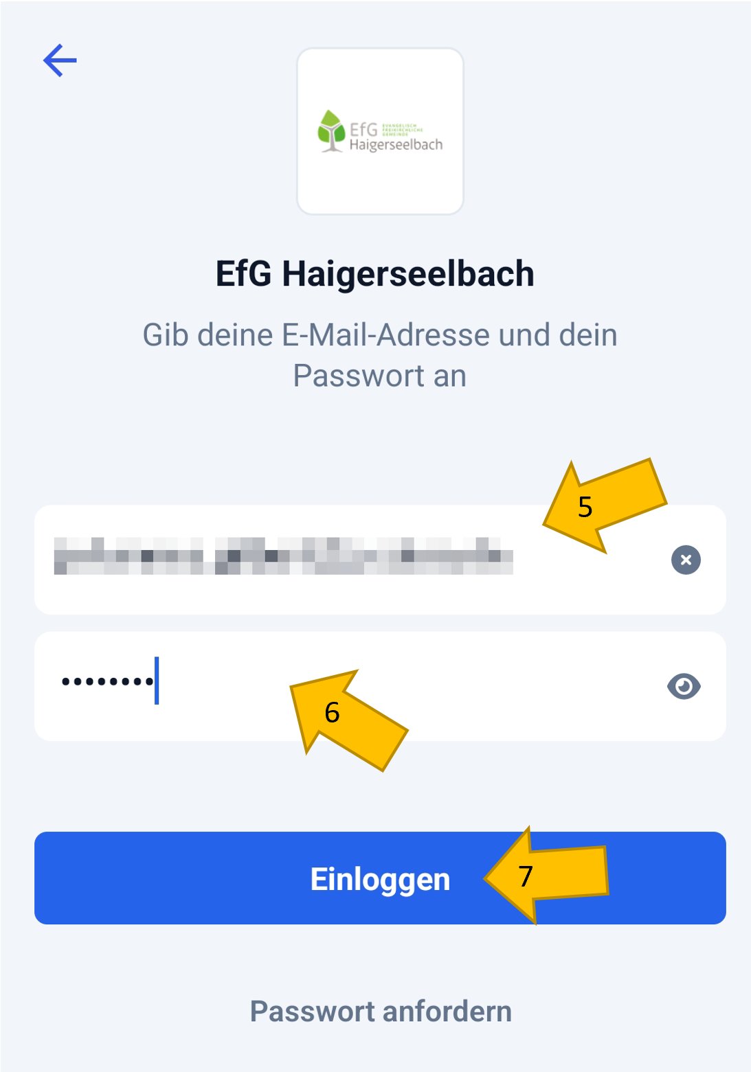 In 7 Schritten kannst du die Anmeldung in der ChurchTools-App mittels Emailadresse und Passwort durchführen. Alles was du benötigst ist dein Smartphone.
