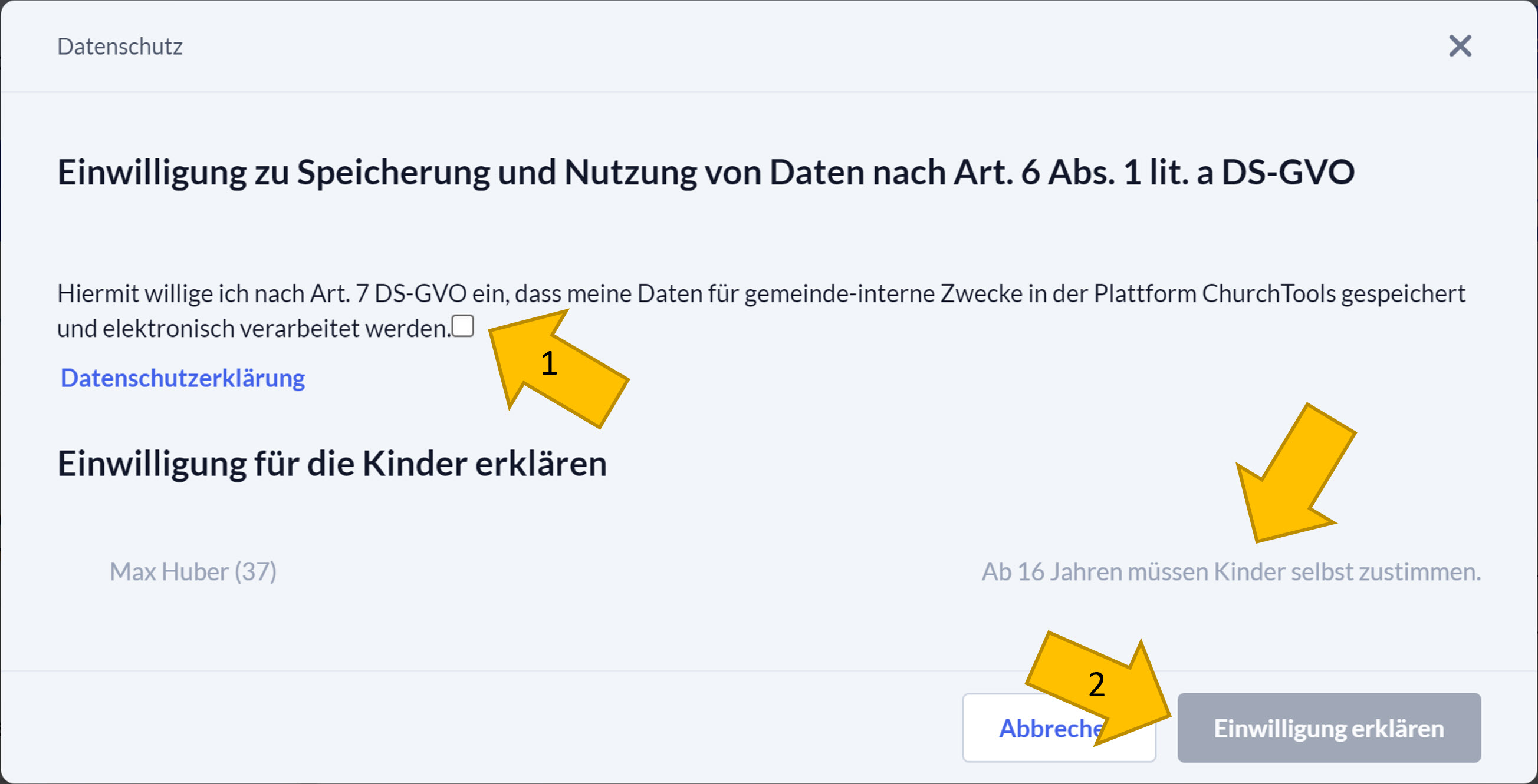Hilfe zur Abgabe der Einwilligung in ChurchTools
