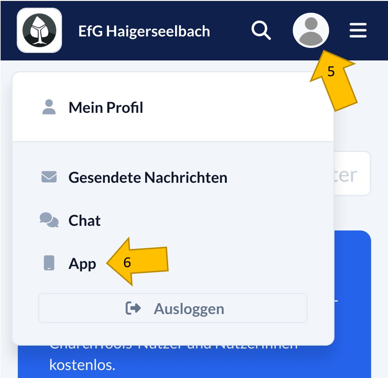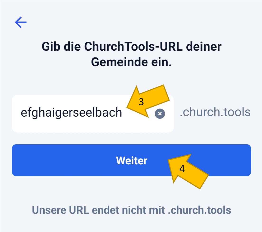 Öffne an deinem Smartphone mit einem Browser deiner Wahl die Webseite https://efghaigerseelbach.church.tools.