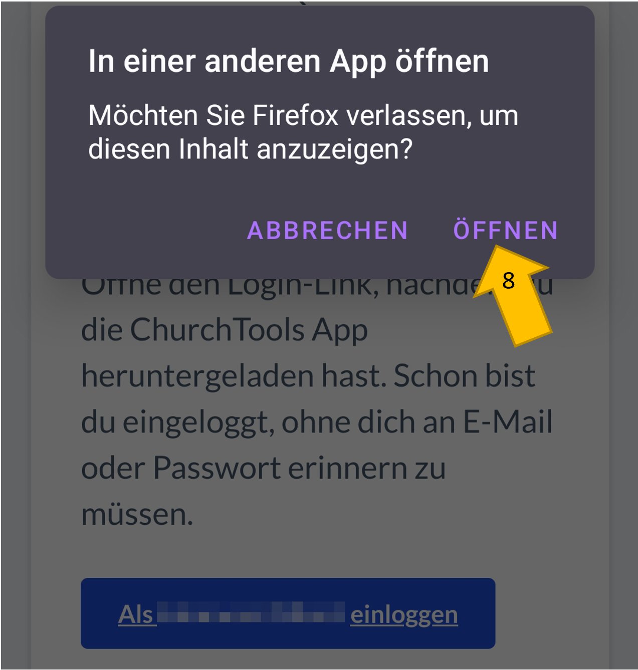 Gegebenfalls wird nun noch ein Popup angezeigt, in dem du bestätigen musst, dass der Link in einer anderen App geöffnet wird.