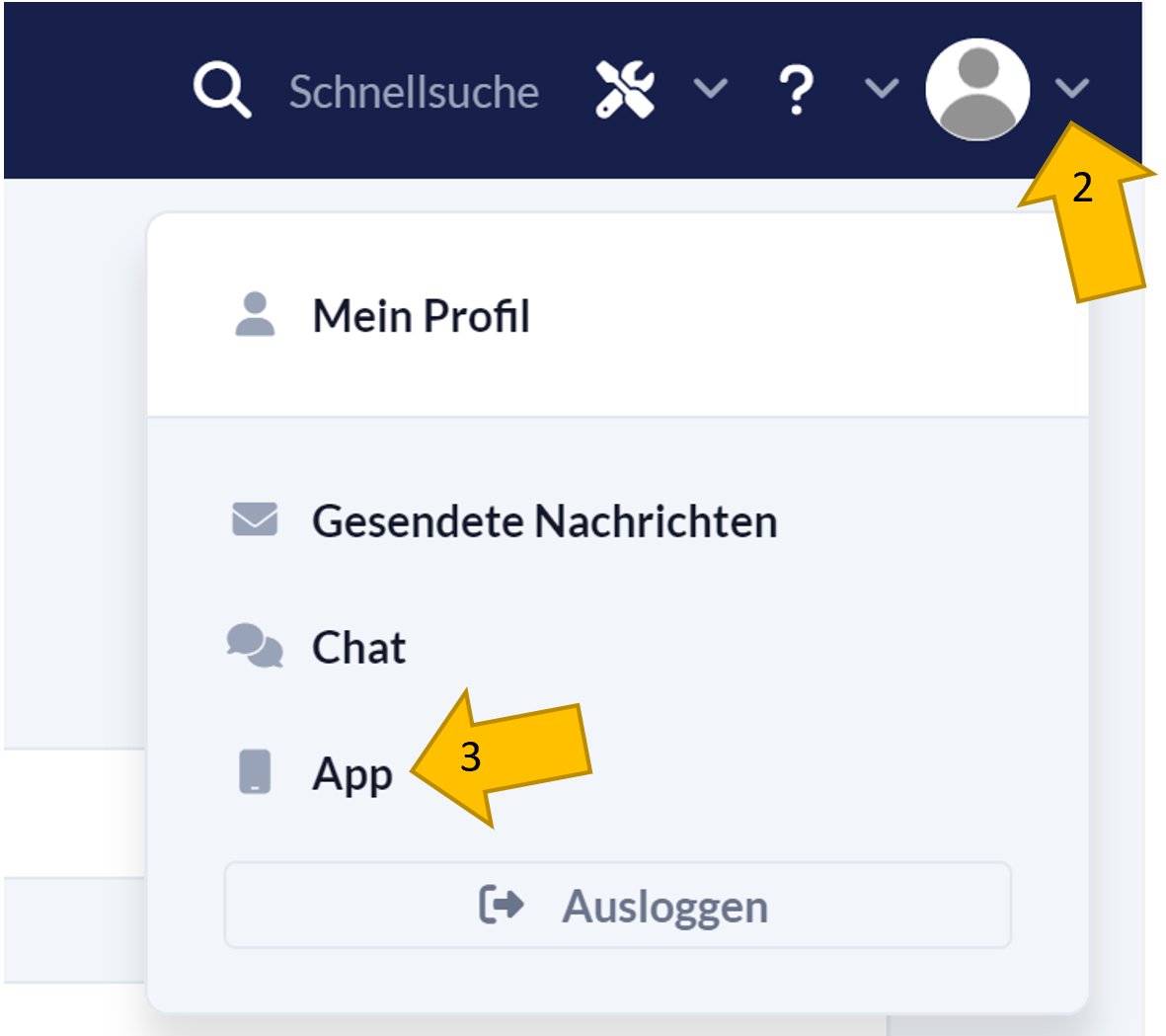 Klicke auf den Menüpfeil neben deinem Avatar. Klicke auf App in dem angezeigten Menü.