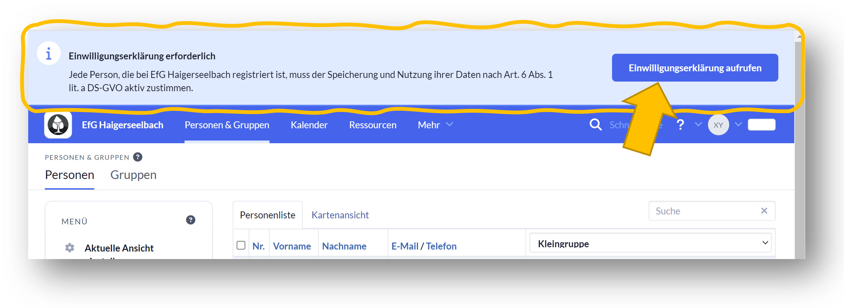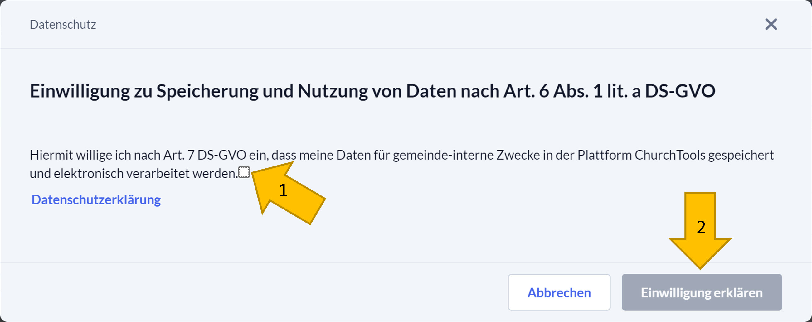 Hilfe zur Abgabe der Einwilligung in ChurchTools